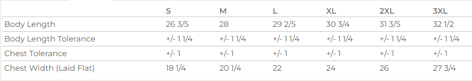 6.1 oz./yd² (US), 10 oz/L yd (CA), 100% ring-spun cotton, 30 singles